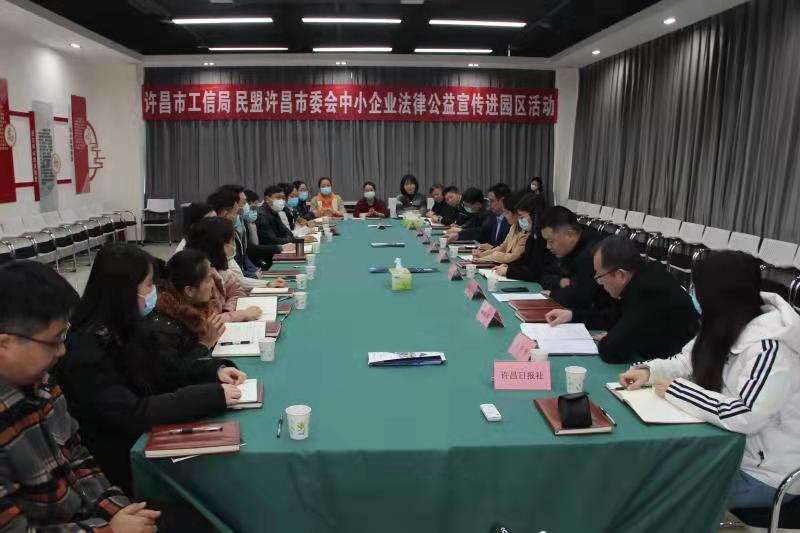 市工信局四级调研员王燕,市政协常委、民盟许昌市委会副主委、河南世纪风律师事务所主任彭胜利出席活动。市工信局相关科室负责人,民盟许昌市委会有关人员,民盟许昌市委会优秀盟员律师代表,许昌市智慧信息产业园负责人,部分中小企业代表参加了活动。